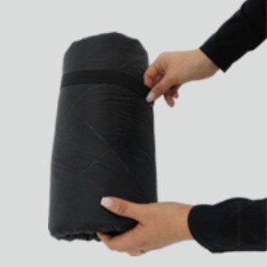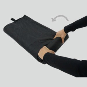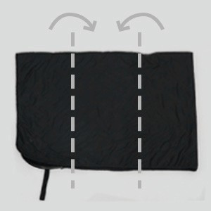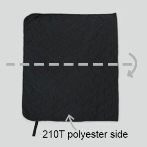 Fold the blanket in half lengthwise with the 210T polyester side facing up and the polar fleece side facing down.